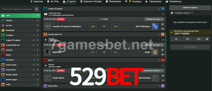 O 529bet oferece uma grande seleção de opções de apostas em e-sports com probabilidades competitivas